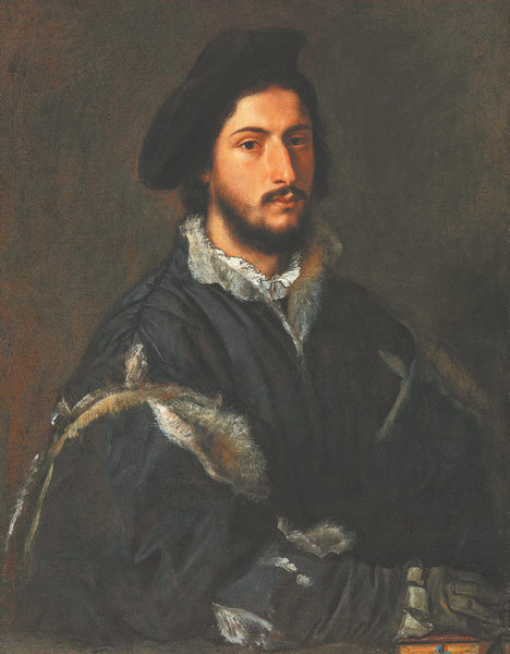 Titian's signature work Portrait of Tommaso Mosti, currently on exhibition at Titian's Flora: Venetian Painting from the Uffizi Galleries at Bund One Art Museum in Shanghai. [Photo provided to China Daily]