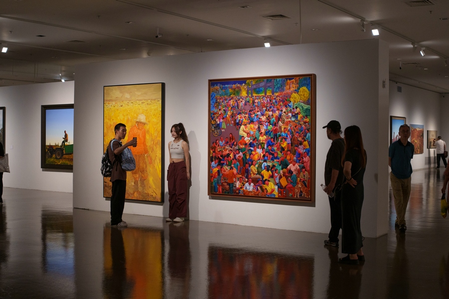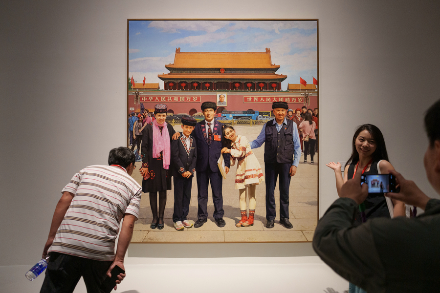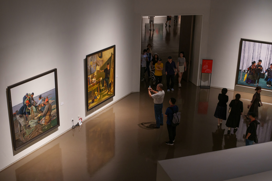 This year altogether 697 works were selected from 1,253 oil painting submissions from around China. "These paintings reflect the great achievements of Chinese modernization, many portraying historical moments, national heroes and landmark events, " said Fan Di'an, chairman of the Chinese Artists Association.