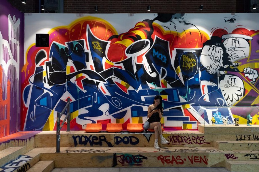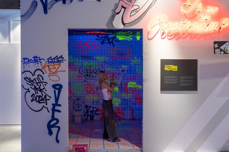 She said that at the exhibition venue visitors can witness the scenes such as New York subway cars, skate parks, rooftop billboards, public restrooms, and phone booths — locales where graffiti artists originally brought their creations to life in urban settings.
