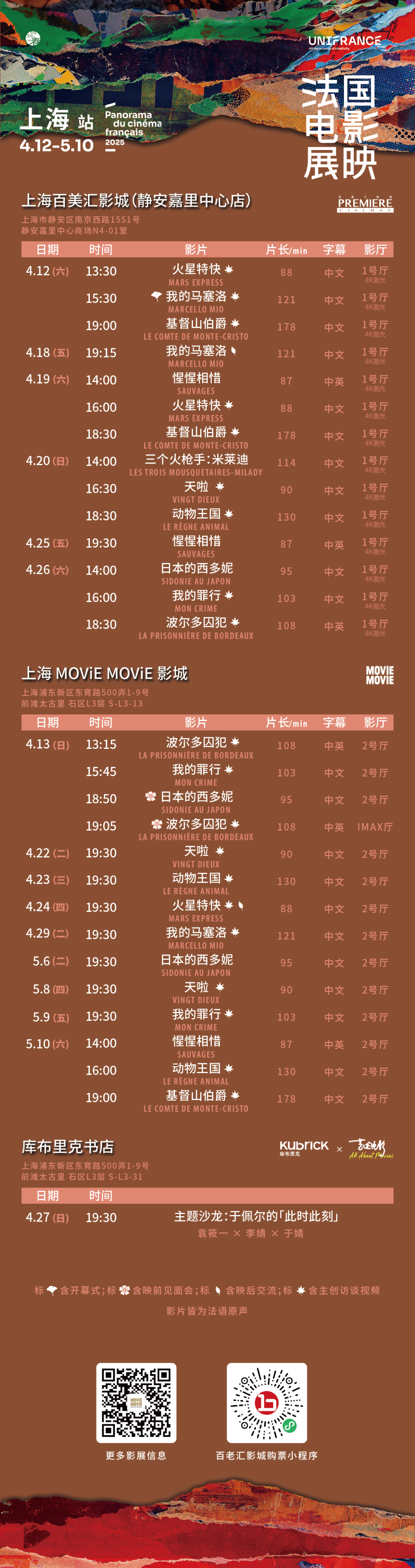 From now until May 10, two cinemas in Shanghai — Premiere Cinemas at Jing'an Kerry Centre and MOViE MOViE at Taikoo Li Qiantan — will feature the films by both rising stars and legendary actors of French cinema as well as events designed to create an immersive experience.