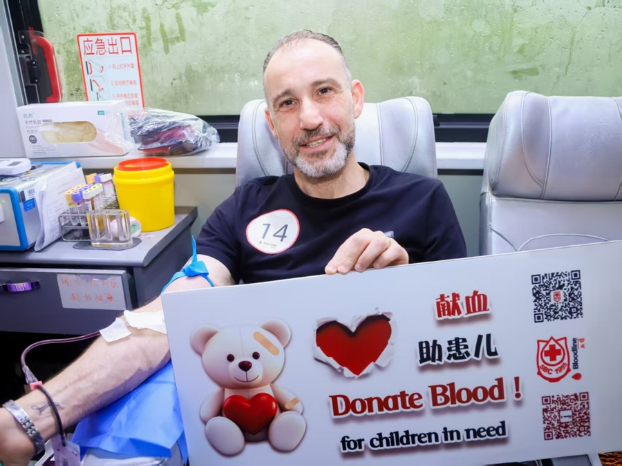 "Blood donation is like football — it's a universal language that brings joy, moves hearts, and inspires love across humanity," said Emanuel, an Italian who donated blood in China for the first time.