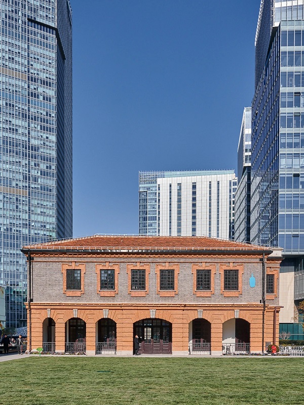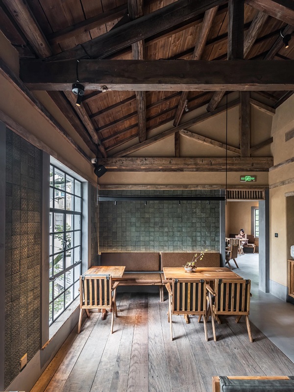 Blue Bottle Coffee added its own flair to the old building, creating a unique blend of contemporary artistry within a warm and nostalgic architectural setting.