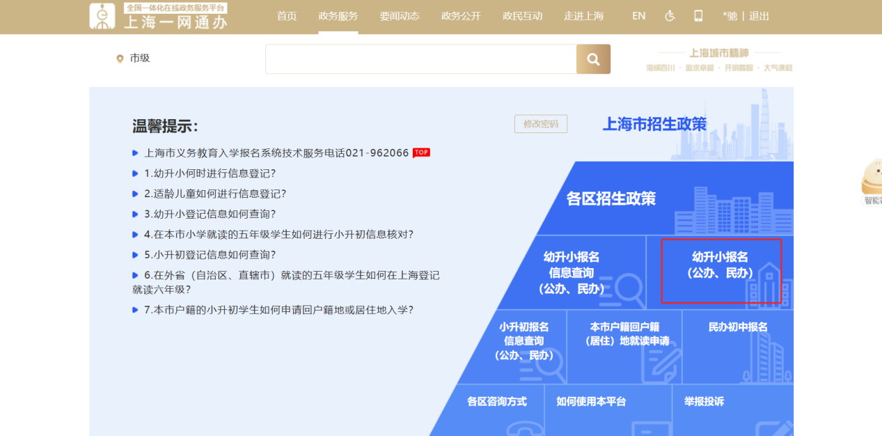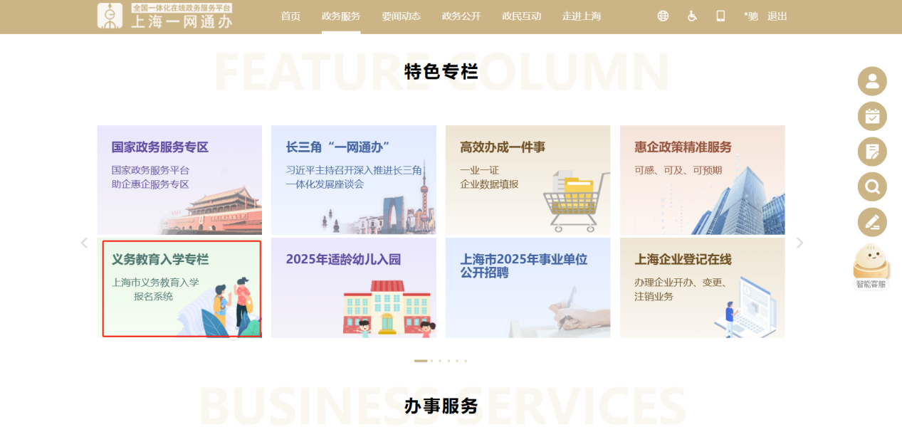 You can apply by logging onto the Compulsory Education Enrollment Section (义务教育入学专栏) of the Government Online-Offline Shanghai (一网通办) platform.