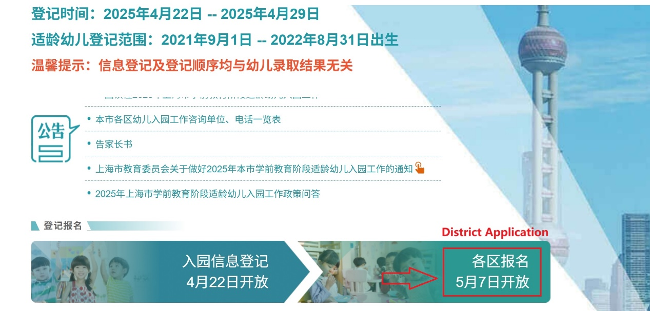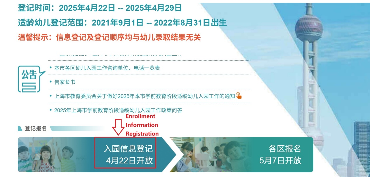 The Information Registration stage will take place from April 22 to 29. You need to register via the Government Online-Offline Shanghai (一网通办) website or the "Suishenban" (随申办) mobile app.