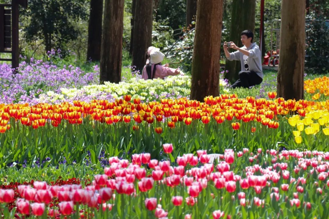 At the park entrance and designated exhibition areas, tulips bloom in a riot of color, offering a perfect backdrop for social media snapshots.