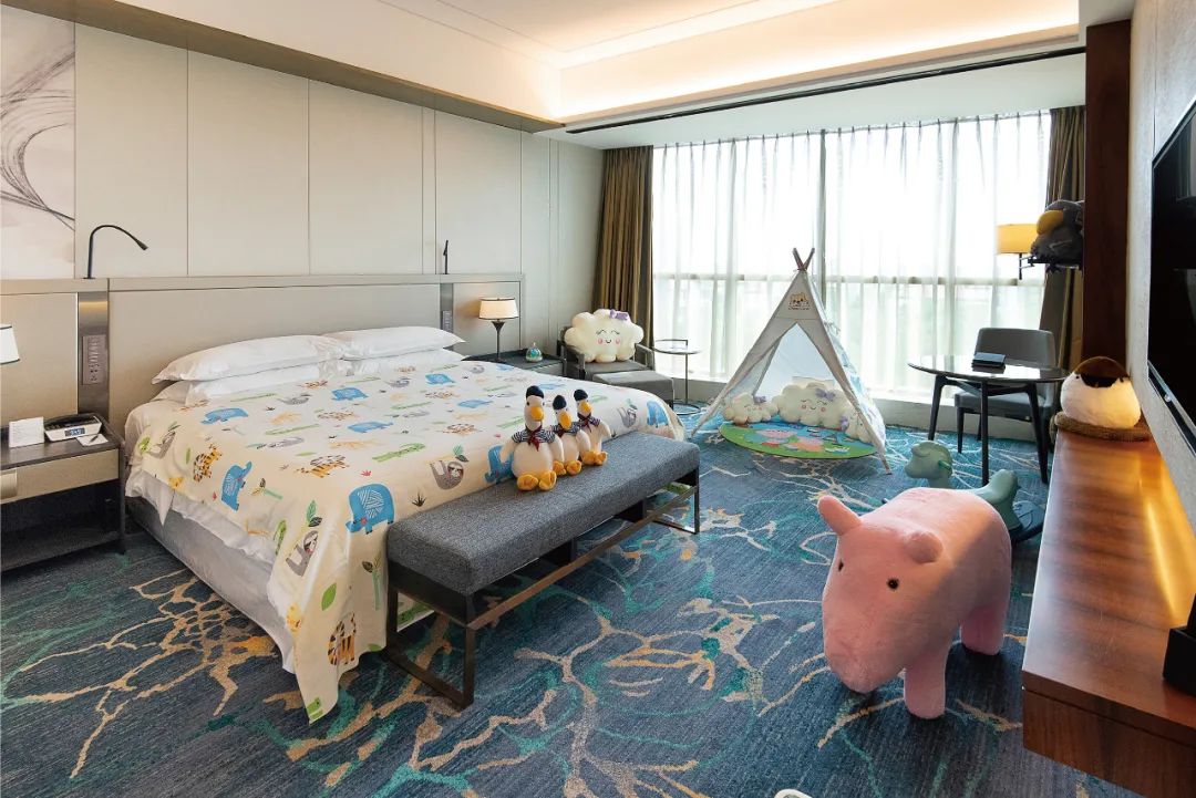 In the evening, guests can check into either the Sheraton Shanghai Chongming Hotel or the Hyatt Regency Chongming Shanghai, both of which offer family-friendly amenities such as indoor and outdoor kids' playgrounds, fitness centers, heated pools, and game rooms. The Sheraton's 0.6-meter-deep children's pool is ideal for young swimmers, while the Hyatt features in-room tents, slides, and adorable children's amenities for a fun-filled stay.