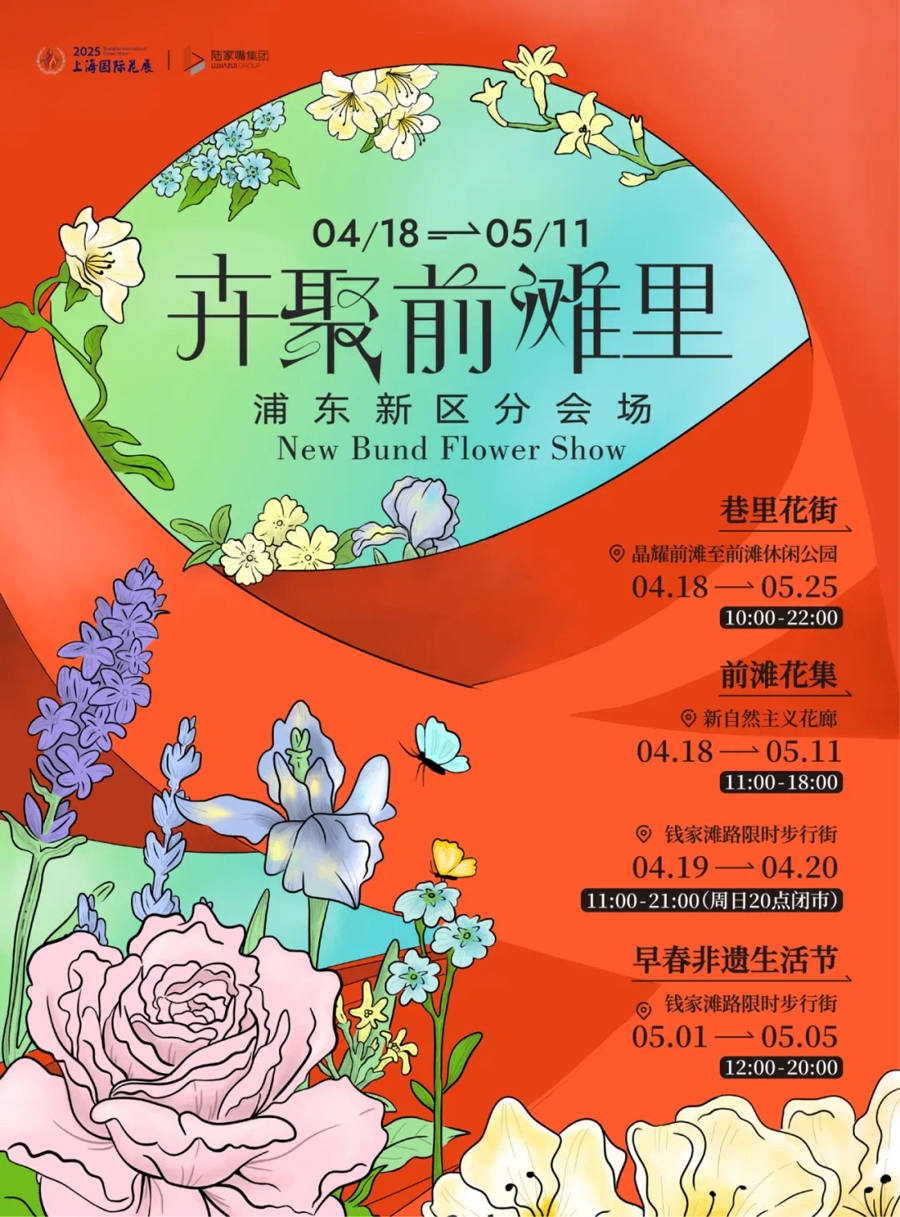 Pudong district will host flower markets and limited-edition culinary events, while Qiantan area features four themed attractions with flower corridors, streets, slopes, and terraces.
