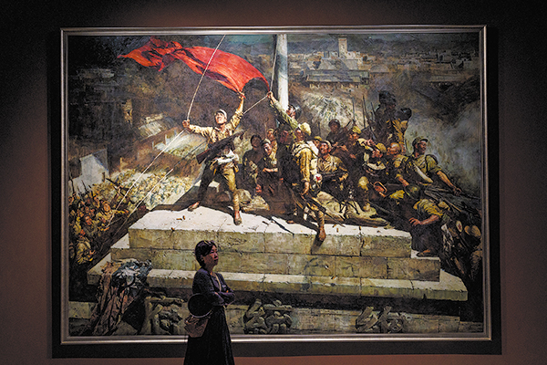 Seizing of the Presidential Palace is his most celebrated painting of this period, jointly created by Chen and Wei Jingshan from 1976 to 1977. The painting won first place in the 1977-1982 National Competition of Historical Paintings on Revolution. It is a monumental work made for and permanently displayed at The Military Museum of the Chinese People's Revolution. A life-size replica is on display at the ongoing exhibition.