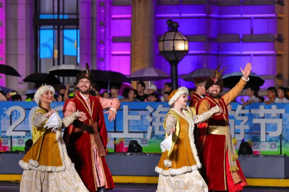 The parade also included a diverse array of artistic performances such as brass bands, bagpipes, folk dances, cheerleading and gymnastics, showcasing Shanghai's openness and inclusiveness.