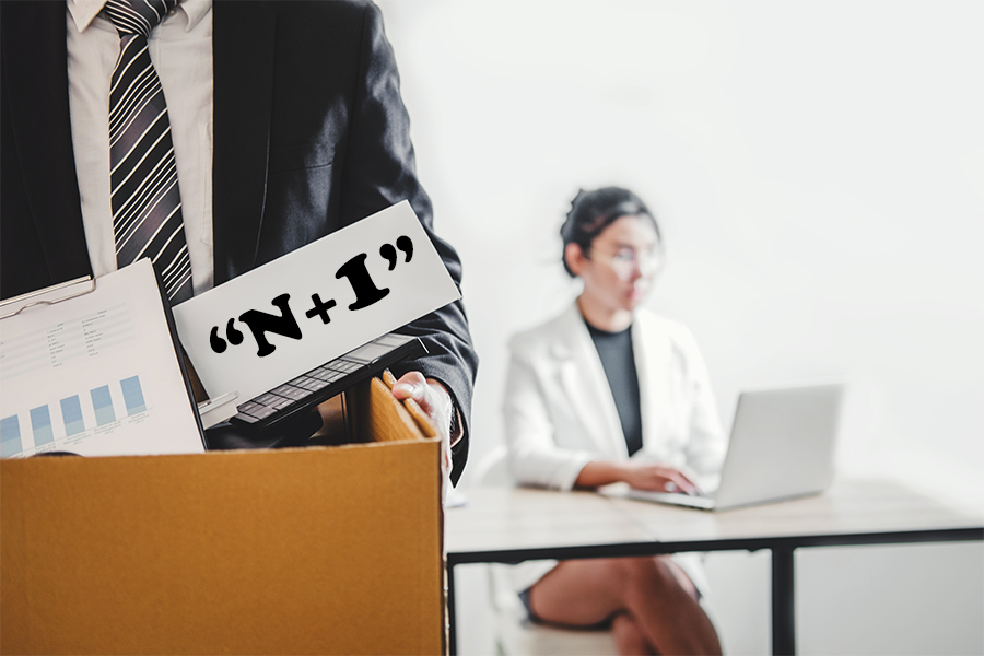 In this context, the "N" in "N+1" refers to the total number of full years the employee has worked at the company. The "1" represents an additional month's salary that must be paid if the employer does not provide the required 30-day written notice before terminating the contract. This extra payment is calculated based on the employee's final full-month salary.