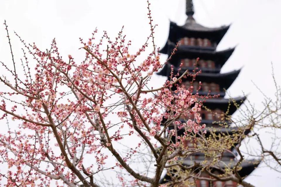 With the plum blossoms at Fangta Park in full bloom, delicate petals and a subtle fragrance are painting a poetic picture of early spring.