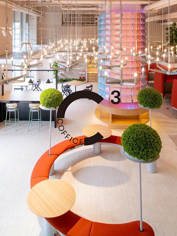 Guided by Kokuyo's "7 Experiences" ecosystem, the space is divided into seven zones representing different work modes.