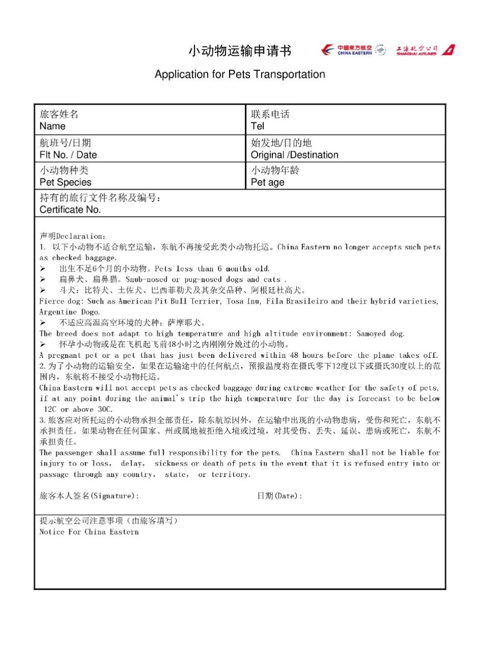 Airlines such as Hainan Airlines, China Southern Airlines, and China Eastern Airlines, Air China, Shandong Airlines, and Sichuan Airlines have introduced "pet cargo" services, where pets are placed in specially designed, oxygenated compartments.