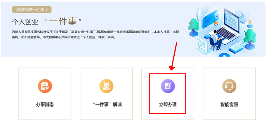 3. Click "Immediate Application" (立即办理).