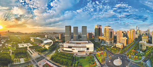 An aerial view of the Shanghai Museum East, the new wing of the Shanghai Museum, which is located in the city's Pudong New Area. [Photo provided to China Daily]