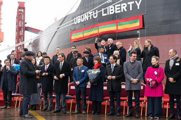 Named Ubuntu Liberty, the vessel is the fourth and last of its kind built by Shanghai Waigaoqiao Shipbuilding for Anglo American.