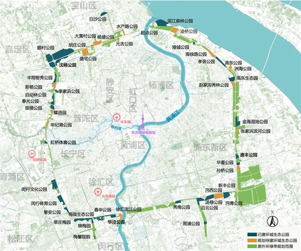 A layout view of Shanghai's outer ring greenbelt parks. [Photo/eastday.com]