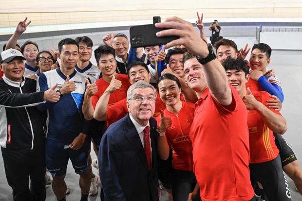International Olympic Committee president Thomas Bach attends the opening ceremony of China's first Continental Development Satellite of the Union Cycliste Internationale (UCI) World Cycling Centre in Shanghai on May 18. [Photo provided to chinadaily.com.cn]