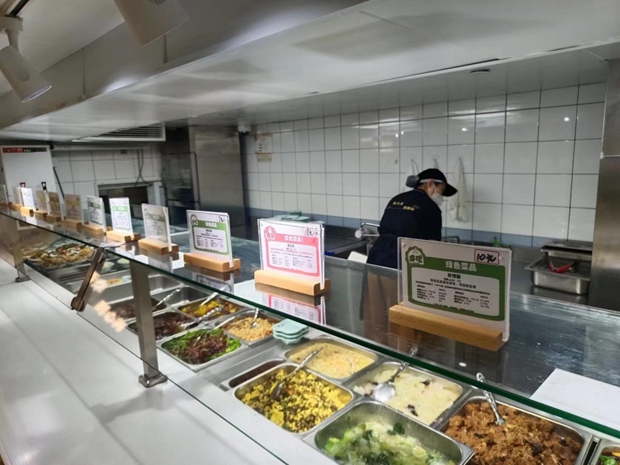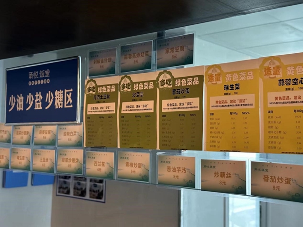 Nutritional labels for daily dishes are posted in a healthy canteen in Shanghai. [Photo/Shanghai Municipal Health Commission]