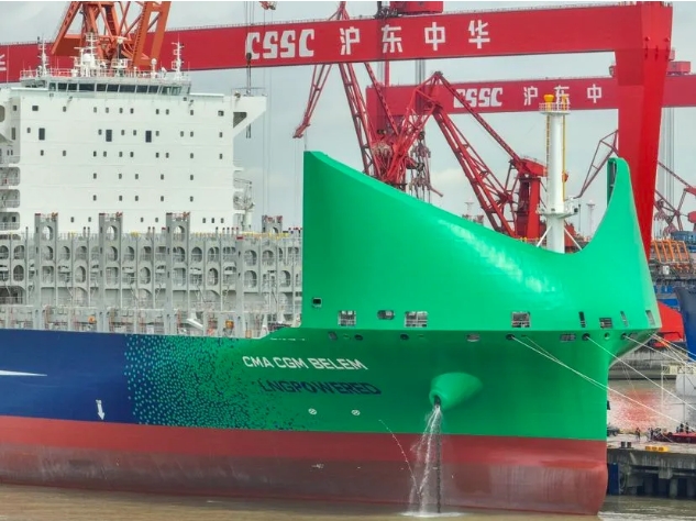 Further setting it apart is its LNG dual-fuel propulsion system, featuring a 12,000 cubic meter B-type LNG fuel tank developed in-house by the company. This design ensures an extensive range of 22,000 nautical miles in gas mode. Moreover, the ship incorporates an intelligent waste gas recycling and reuse system to enhance combustion efficiency and minimize emissions. Additionally, a patented wind shield has been integrated to reduce friction during voyages.