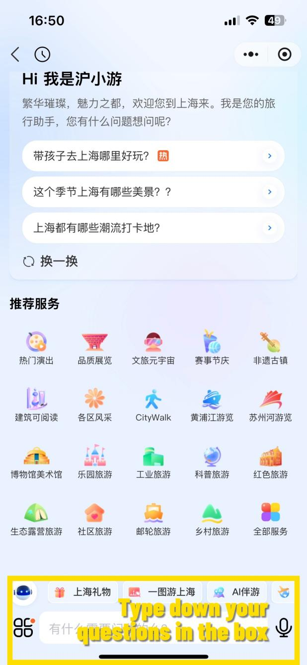 Powered by AI, Hu Xiaoyou, or "Little Shanghai Guide" in English, supports multiple languages, including English, Chinese, Japanese, and Korean, and is accessible via WeChat or Alipay.