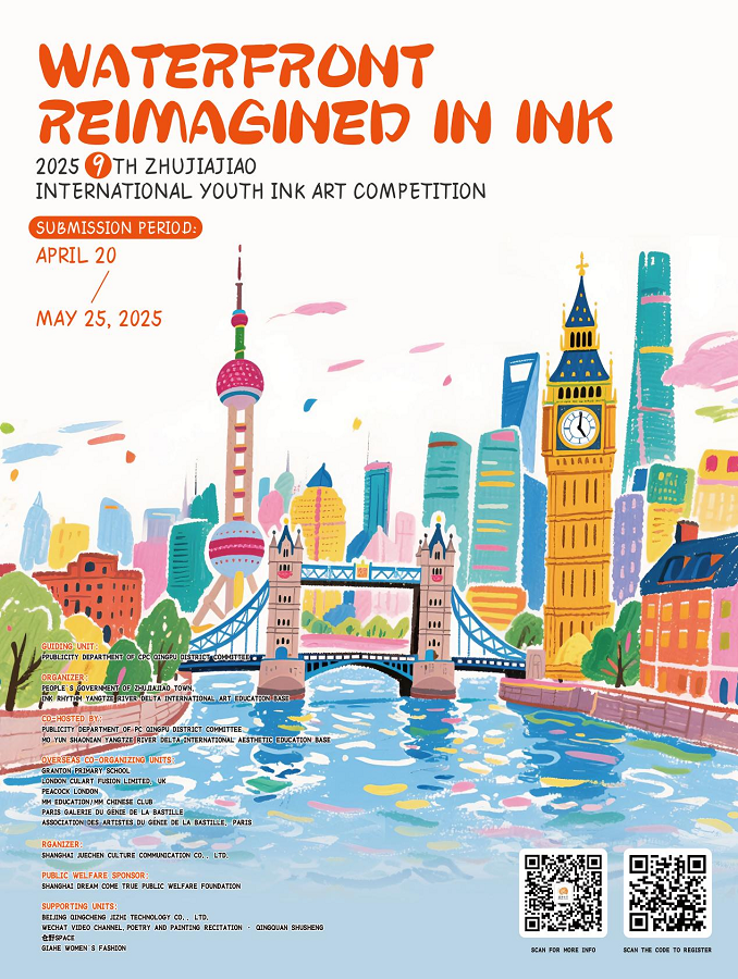 Participants, aged 4-17, can submit their creations through calligraphy, ink painting, AI art or photography. They are encouraged to showcase iconic waterfronts, such as those of Shanghai's Huangpu River and Suzhou Creek, Zhujiajiao ancient town, and the Thames River. The deadline for submissions is May 25, and entries can be submitted via the official WeChat account "Charming Ink Youth".