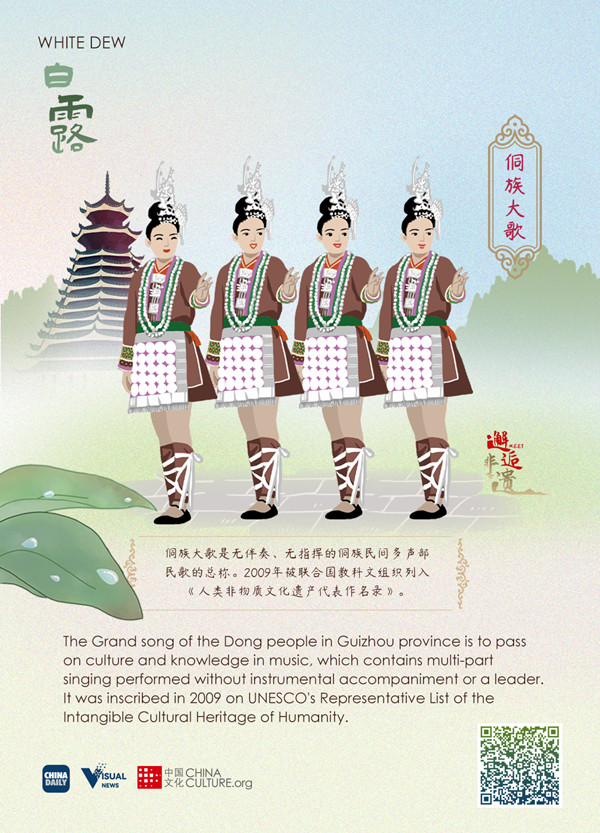 The traditional Chinese solar calendar divides the year into "24 solar terms" and White Dew (bai lu) – the 15th solar term of the year – begins this year on Sept 7 and ends on Sept 21.