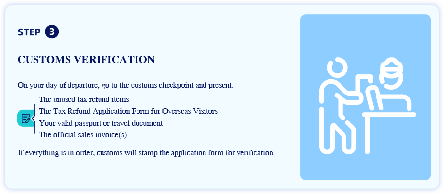 Note: The visitor can still claim the tax refund later through regular procedures upon departure.