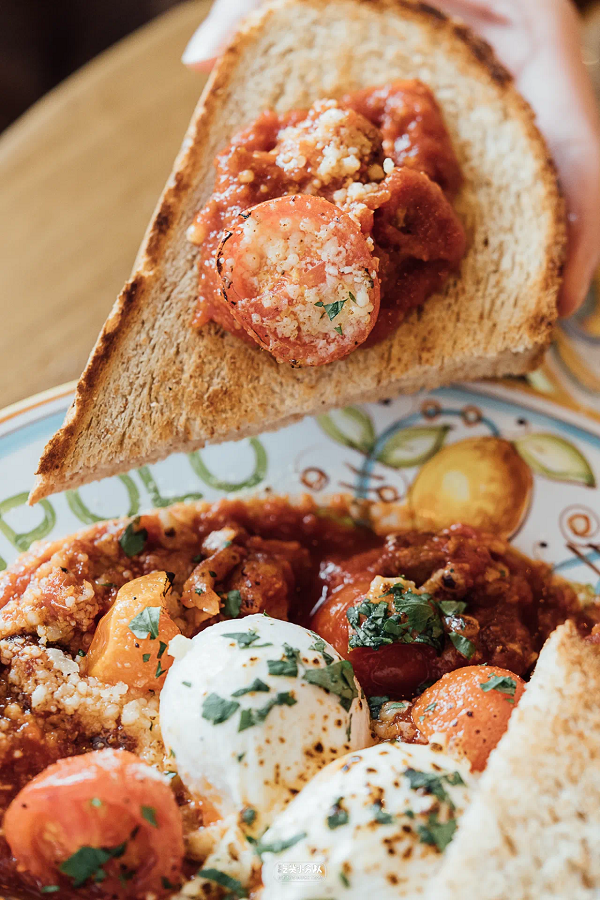 It may be the most cost-valued brunch priced at 68 yuan ($9.39). The base sauce is made with tomato sauce, simmered with olive oil and sugar for a long time, along with the aroma of cheese. It starts with a bright acidity, followed by the savory taste of cheese and the fresh, juicy texture of tomatoes. Dip the toasted bread in the sauce and egg for a fully satisfying brunch.