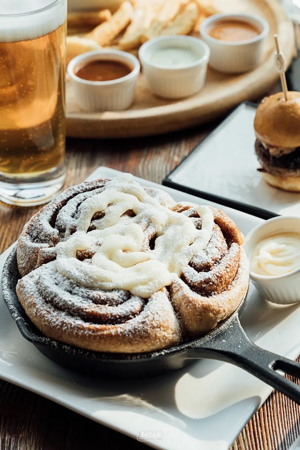 This freshly baked cinnamon roll, a highlight of Shanghai's cinnamon roll scene, is available only during brunch hours. Layers of ample cinnamon and brown sugar filling, combined with homemade cream cheese frosting, truly live up to its title as a "calorie bomb", offering a delightful dopamine-inducing experience with every bite.