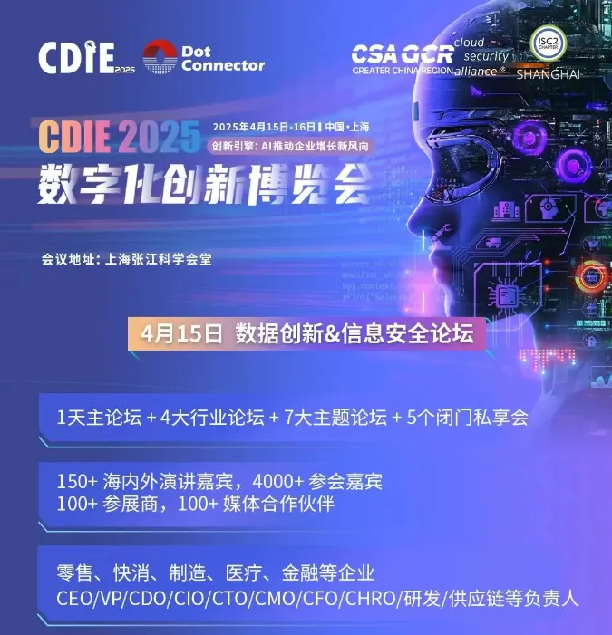 The 2025 CDIE Digital Innovation Expo’s “Data Innovation & Information Security Forum” will be held at the Shanghai Zhangjiang Science Hall on April 15. This year’s conference will feature 1 main forum, 4 industry forums, 7 thematic forums and 5 closed-door sessions.