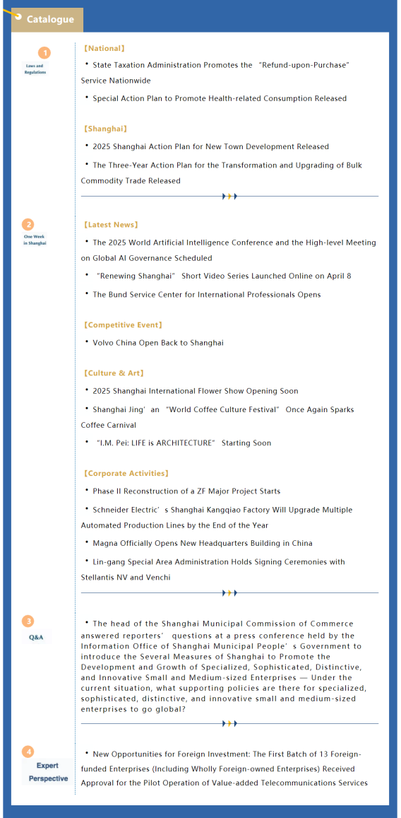 Shanghai Weekly Bulletin is an information service presented by the Foreign Affairs Office of Shanghai Municipal People's Government in collaboration with Wolters Kluwer to foreign-funded enterprises, foreign-related institutions as well as people from overseas living in Shanghai. Covering major national and Shanghai foreign-related news, event information, policy Q&A and interpretations in the past week, it keeps you up-to-date with the latest foreign-related policies and developments in Shanghai.