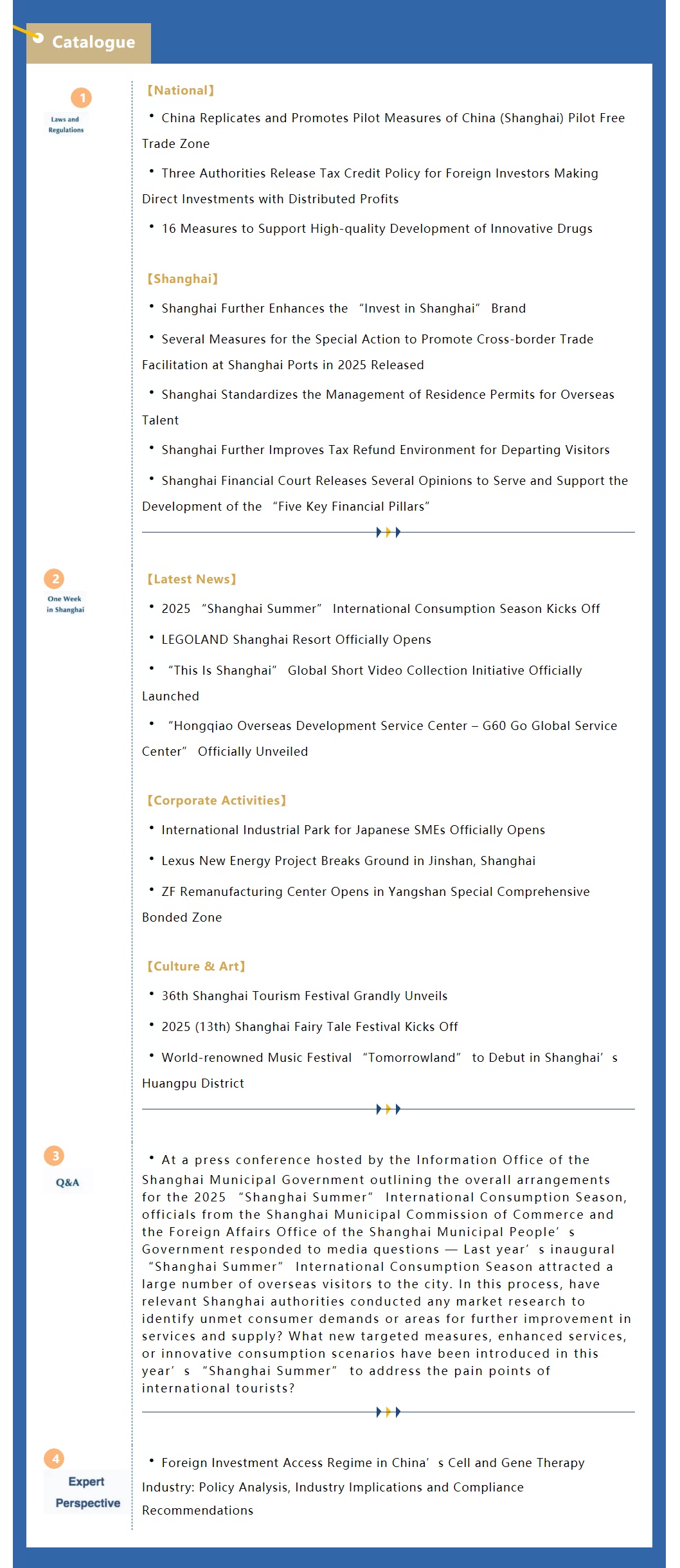 Shanghai Weekly Bulletin is an information service presented by the Foreign Affairs Office of Shanghai Municipal People's Government in collaboration with Wolters Kluwer to foreign-funded enterprises, foreign-related institutions as well as people from overseas living in Shanghai. Covering major national and Shanghai foreign-related news, event information, policy Q&A and interpretations in the past week, it keeps you up-to-date with the latest foreign-related policies and developments in Shanghai.