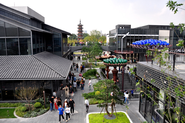 Longhua Hui, a cultural and commercial complex, stands opposite the ancient Longhua Temple. [Photo/CFP]