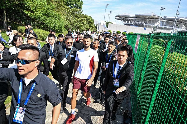 Every one of Djokovic's practice sessions at the Qizhong Tennis Center, since his arrival on Oct 2, has been swarmed by fervent fans, so much so that security was drafted in to help him make his way out.