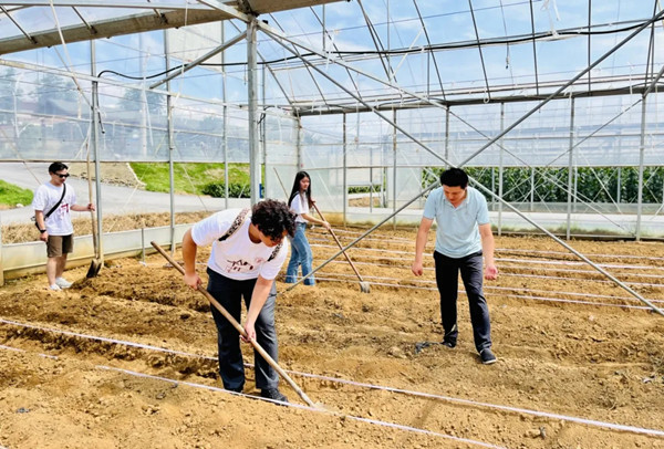 During the survey, students actively engage in farm work, thereby enriching their understanding of various crops. [Photo/SUFE International Cultural Exchange School]