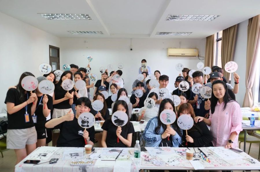 During cultural workshops, students explored the elegance and vibrancy of traditional Chinese painting. They discovered how ink and pigments blend into vivid patterns through the delicate combination of calligraphy techniques and fan painting, offering them an immersive experience of Chinese cultural charm.