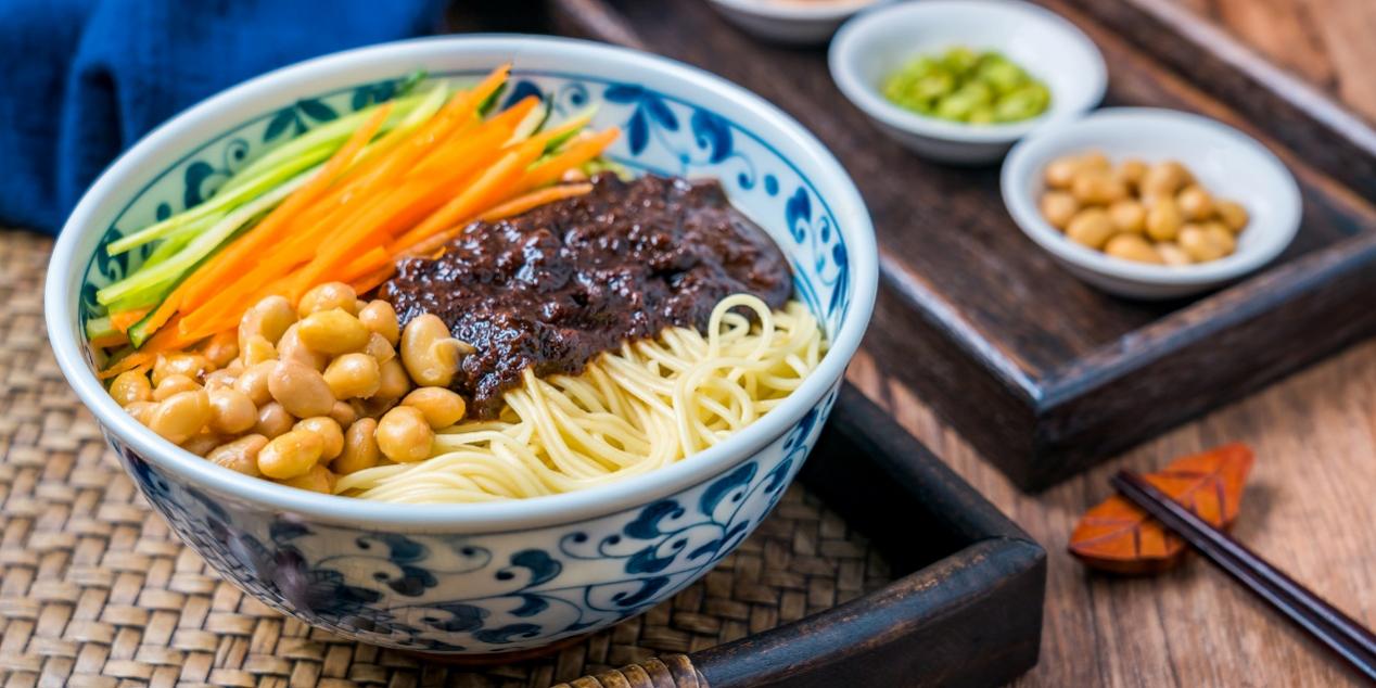 Zhajiangmian (Noodles with soybean paste): Hand-pulled noodles topped with savory soybean paste.