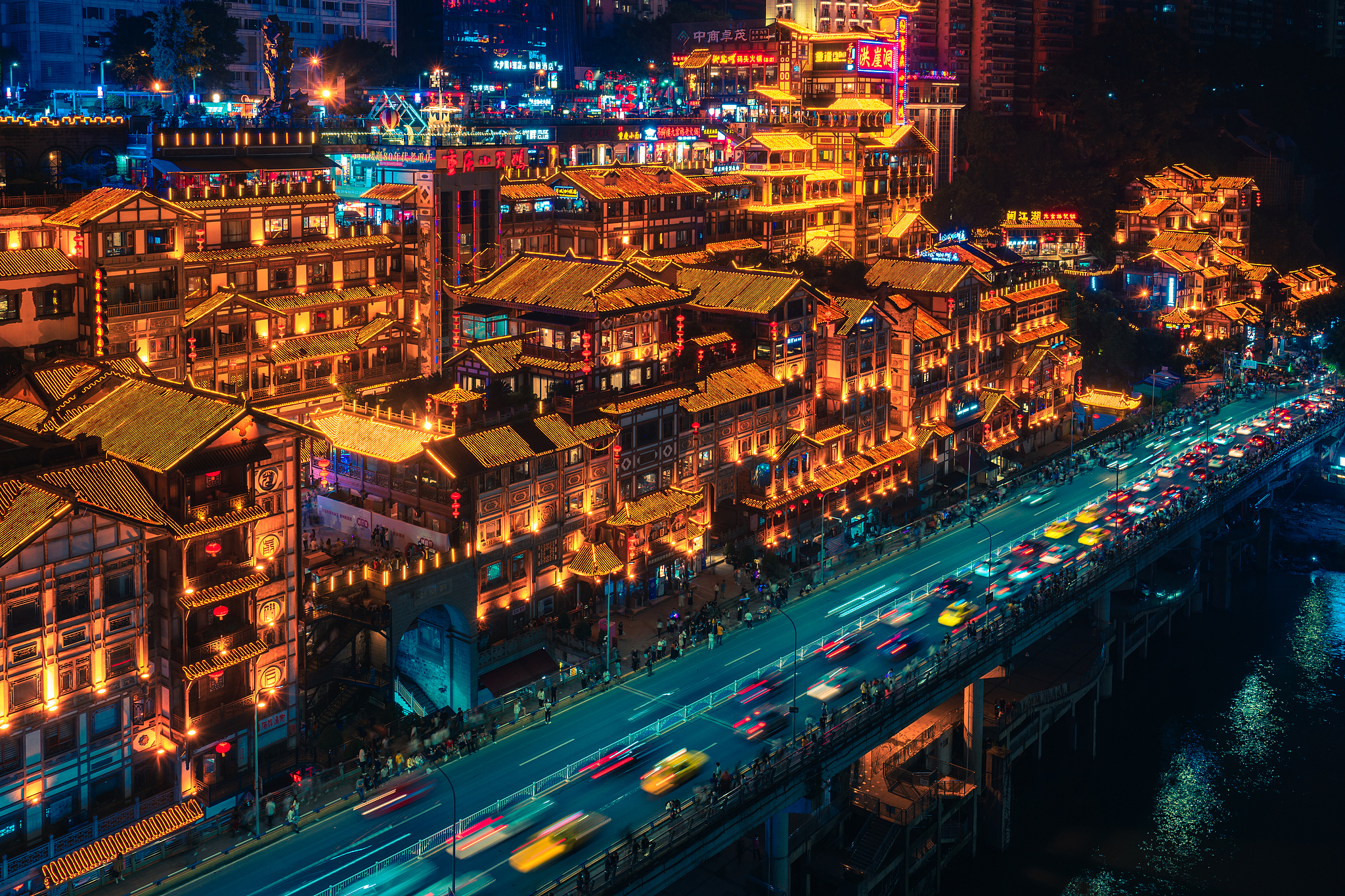 Liziba Light Rail: Watch trains glide through residential buildings — a symbol of Chongqing's "3D transportation". Capture playful photos at the riverside walkway.