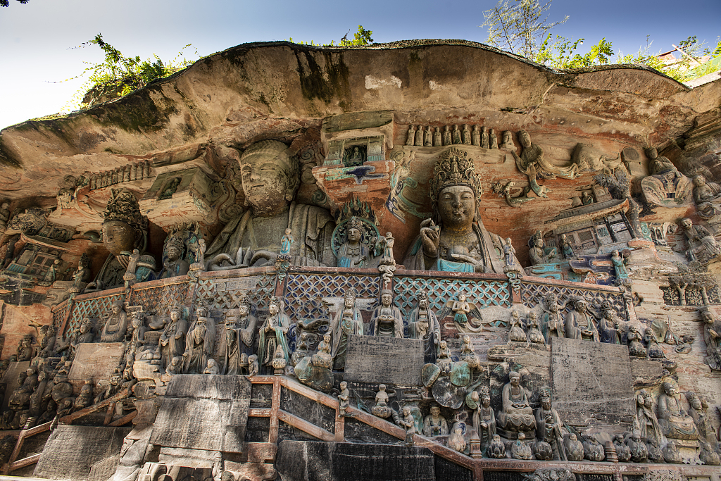 Dazu Rock Carvings: A UNESCO World Heritage Site with a history of over 1,000 years. Admire the intricate and lifelike Buddhist, Taoist, and Confucian sculptures spread across 75 sites, showcasing the artistic brilliance of ancient Chinese artisans.