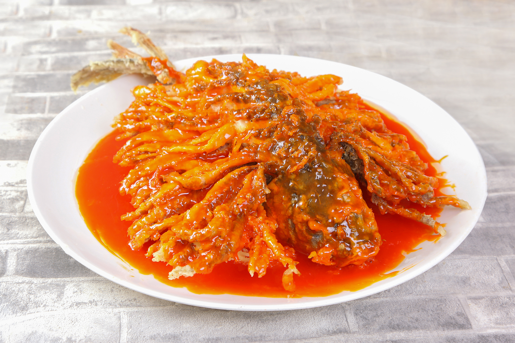 Lion-shaped Fish: Made from carp, diagonally slashed and fried until the meat stands upright like a lion's mane, then topped with a savory gravy.
