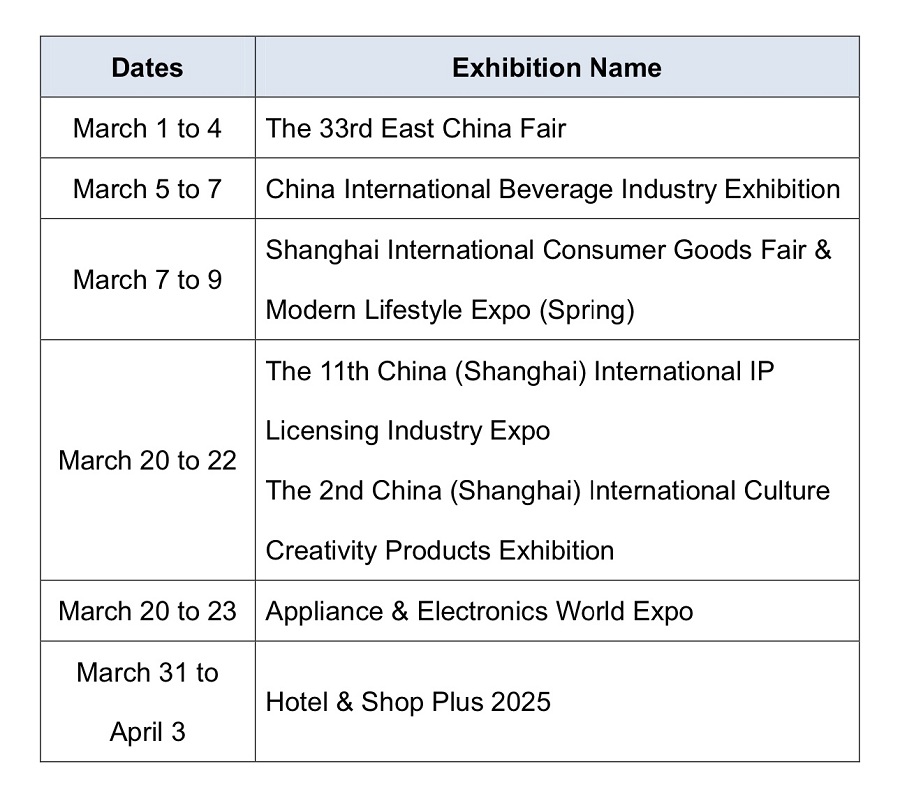 Explore a variety of really exciting consumer-focused exhibitions in Shanghai's Pudong New Area this March — featuring everything from international trade fairs to wellness expos. The key events are as follows: