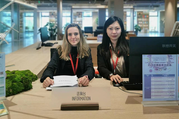 Bermet Dzhuzumkulova from Kyrgyzstan and Veronika Hozakova from Slovakia, two international students from Donghua University, have taken on pioneering roles as the first foreign students to intern at the district-level government service hall.